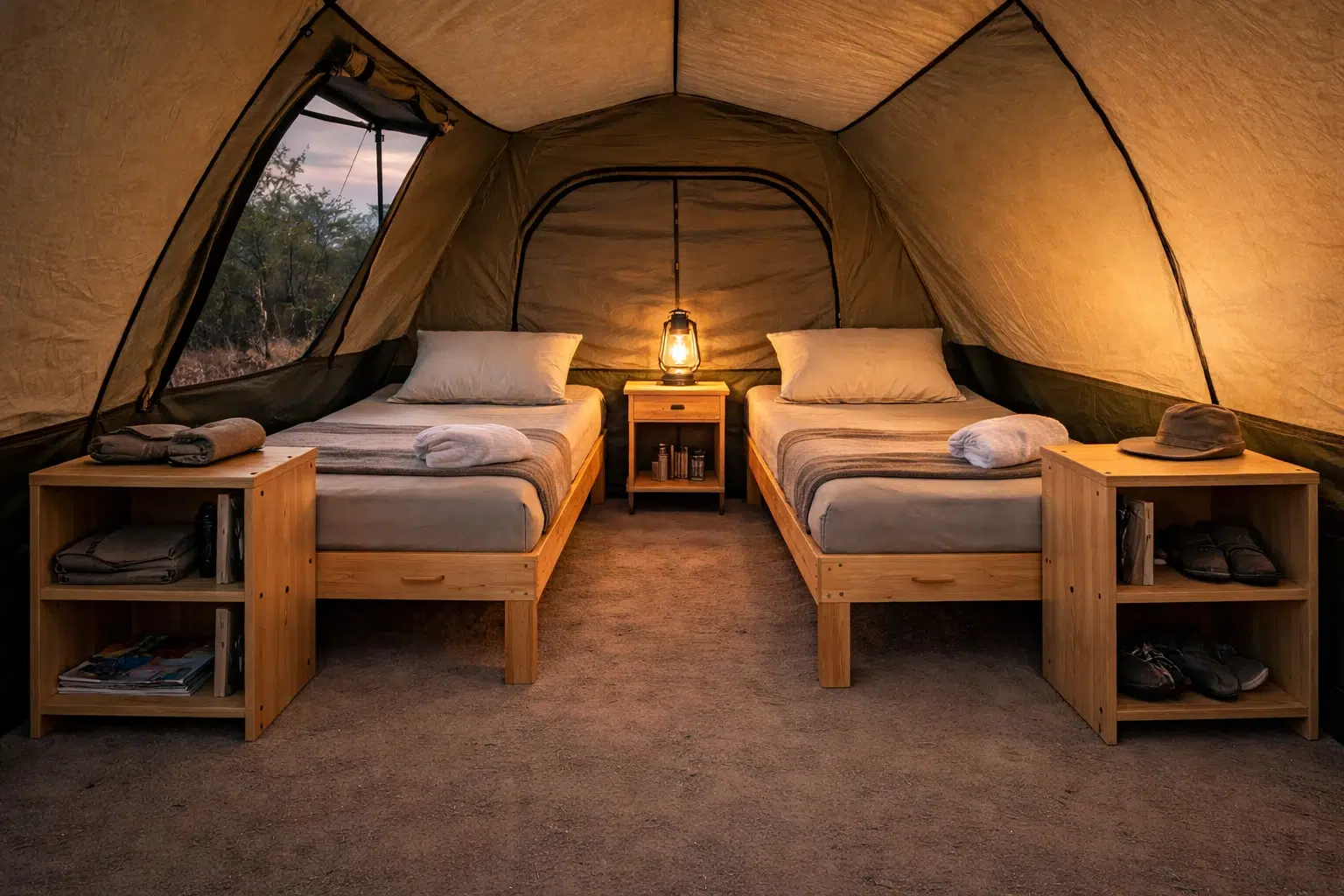 Communal spaces for downtime, briefings, and evening socials